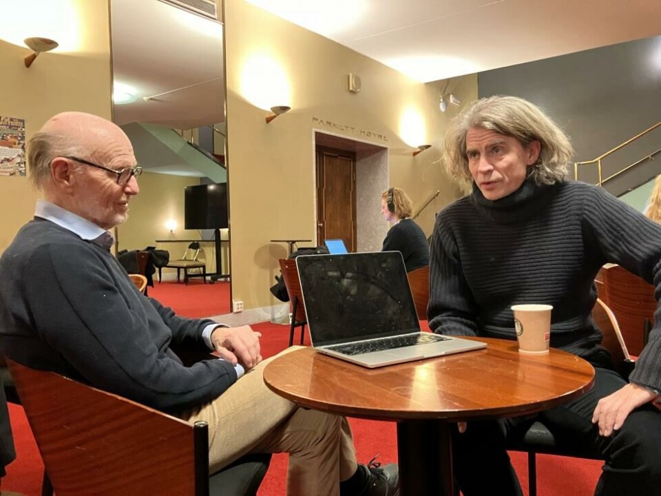 Vi sitter i restauranten i andre etasje, sammen med tidligere teatersjef, Kjetil Bang-Hansen og Oslo Nyes nåværende sjef, Runar Hodne. Pressekonferansen er nettopp slutt. Teatret i ferd med å fylles av mennesker for kveldens forestilling, Snøfall 2, som for ordens skyld ikke må forveksles med dukketeatret, og der besetningen både består av barn og skuespillere fra Oslo Nye. Forestillingen spilles for fullsatte hus.
