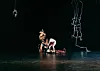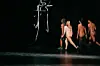 Gradvis veks det ein lys, knirkande lyd ut frå strupen til dansarane, samstundes som andletet vrir seg i eit grotesk smil som blottlegg heile tanngarden. Handlinga er tvitydig, for sjølv om lyden er svært sped ser det ut som det tek mykje krefter reint fysisk å lage den, eller snarare undertrykke den. Det høyrest ut som både eit gråte- og fnisekor på same tid. Dei beveg seg rundt i rommet med forsøk på gruppeløft, og ei humring spreier seg i salen idet nokon av løfta fell saman, dei ser ikkje ut til å bry seg nemneverdig om ei rumpe hamnar midt i eit ansikt. Kvar gong dei ramler får stemma lov å sleppe meir fri. Stålstrukturen har byrja å rotere, og slepp frå seg nokre kvin ikkje ulike dansarane sine. Ein hyllest til det usmurde maskineri, tenkjer eg.