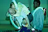 Louis Schous-Hansen, Oda Olivia Øverbø Lindegård og Amie Mbye som klynge i Rosalind Goldbergs Dim. Foto: Ekaterina Lukoshkova.