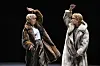 Den andra skillnaden är pauserna. Aktriserna gör avbrott, går ur sina roller och vi hör barcarolen ur Offenbachs Hoffmanns äventyr. I slutet tar de av sig pälsarna och tar varandra i hand. En kort sekund kysser de vänskapligt varandra på munnen. Det gör naturligtvis föreställningen lätt brechtiansk, men samtidigt litet idyllisk. Den tolkning som blir ofrånkomlig är att kampen egentligen är en kamp inne i samma person. De långa replikerna kan kännas som en lång inre monolog. Att Koltès sällan var överens med sig själv torde vara uppenbart.